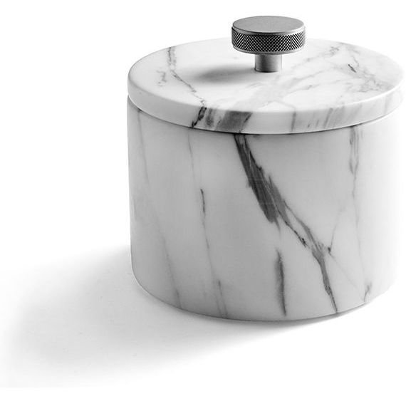 Оснащение:3SC APUANA 2.0 Баночка универсальная, D=8,5/h12 см, с крышкой, настольная, цвет: мрамор Bianco Statuario/хром p>