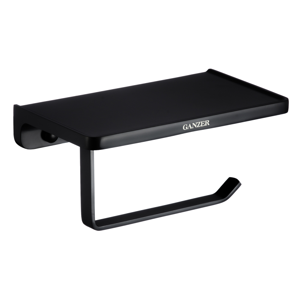 Держатель туалетной бумаги Ganzer (Ганзер) GZ88034-C с полкой, черный