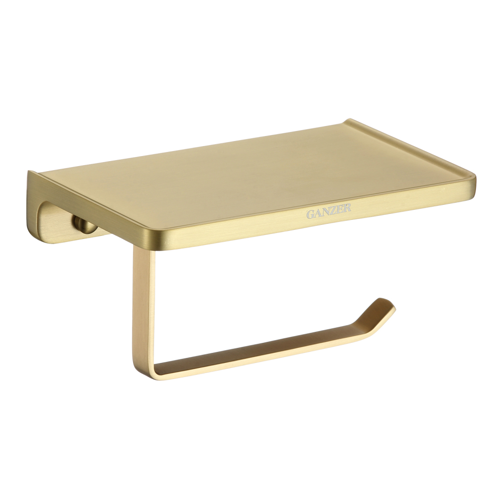 Держатель туалетной бумаги Ganzer (Ганзер) GZ88034-S с полкой, матовое золото