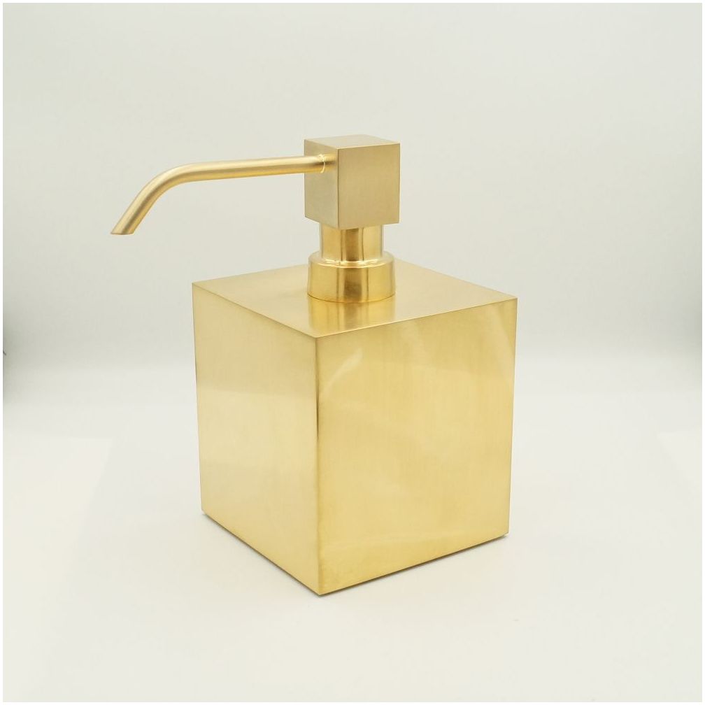 Дозатор квадратный металлический Surya (Сурия) Metall 8,5х8,5хh14,5 см с помпой V3, цвет золото сатин 6239/GOS-V3