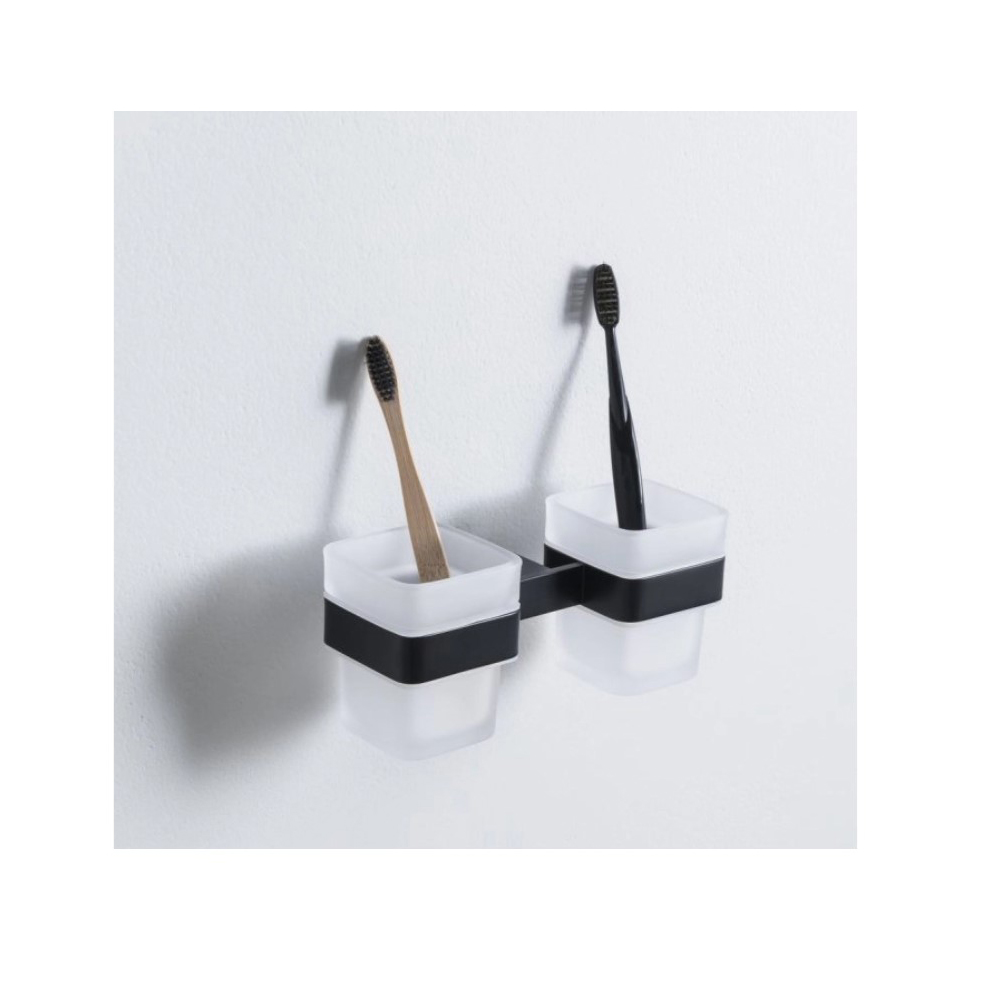 Двойной стакан для зубных щеток Allen Brau (Аллен Брау) Infinity 6.21003-31 белый, черный матовый