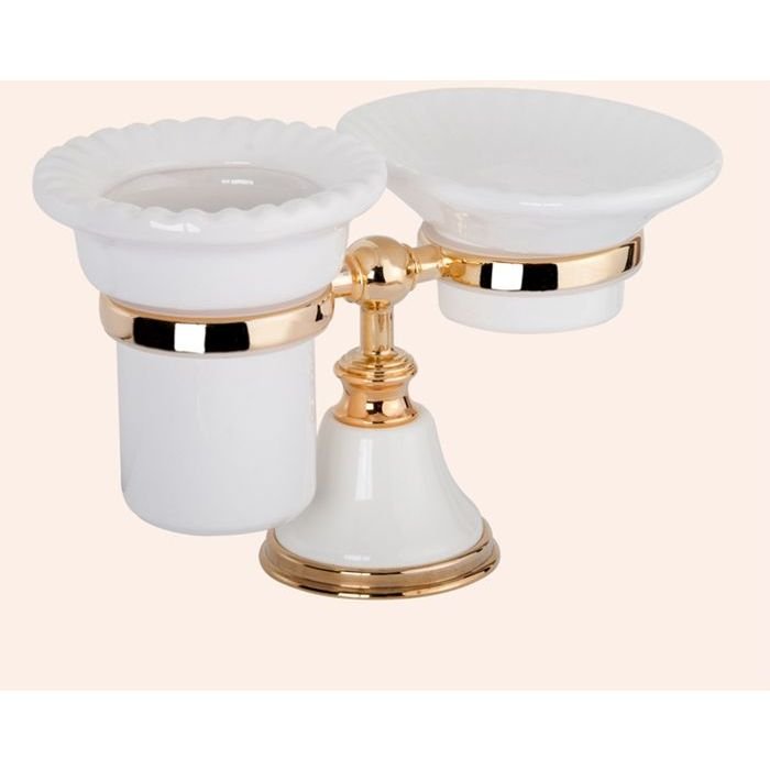 Настольный держатель TW collection (Тв Коллектион) Harmony с мыльницей и стаканом, керамика, Золото, TWHA141bi/oro