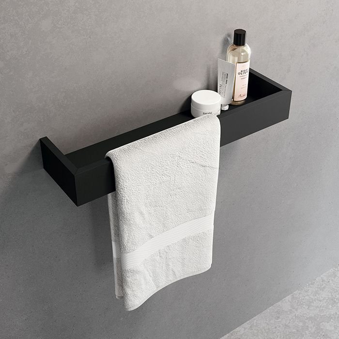 Полка с полотенцедержателем Novellini (Новеллини) Kuadra 60х12 см из алюминия Черный матовый R90AKFMPS60-H