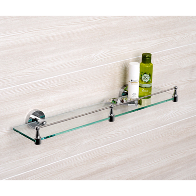 Полка стеклянная с бортиком Rhein К-6200 Wasserkraft Материал: металл, хромоникелевое покрытие, уплотнительные пластиковые кольца, закаленное стекло