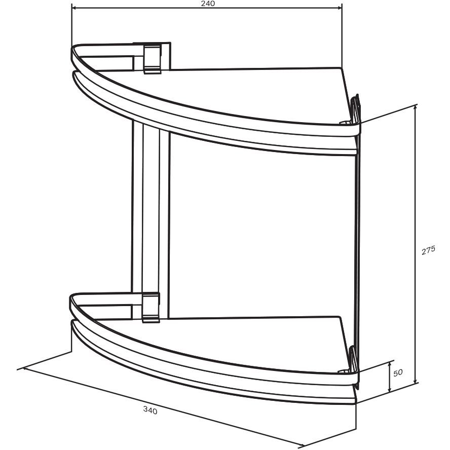 Полка угловая двухуровневая стеклянная Am.Pm (Ам.Пм) Sense L, алюминий, серебристый, A7456200