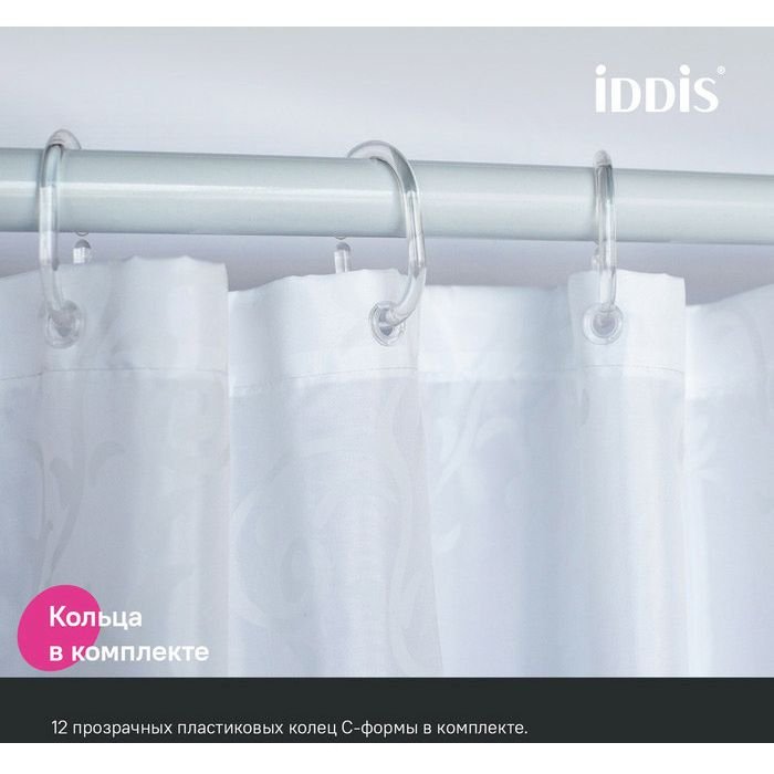 Текстильная штора для ванной белого цвета с ненавязчивым узором гармонично впишется в классический и современный интерьер. • Изготовлена из износостойкого полиэстера с водоотталкивающей пропиткой. При попадании на ткань вода не впитывается, а скатывается каплями, даже при сильном напоре воды. • В комплекте 12 колец С-формы из прозрачного пластика. • По верхнему краю расположены 12 прозрачных пластиковых люверсов. • Штора имеет утяжеляющую нить по нижнему краю, которая позволяет избежать задирания ткани. • Легко ухаживать: шторку для ванной комнаты можно стирать в стиральной машине в деликатном режиме и гладить утюгом на минимальной температуре. Гарантия на текстильные аксессуары Iddis® – 1 год. (с) Авторский текст, сентябрь 2023 г.