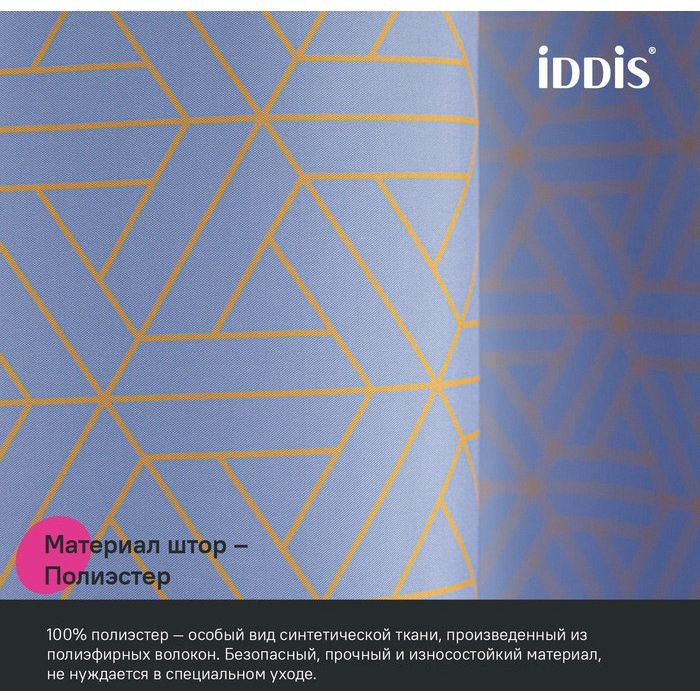 Текстильная штора красивого лилового оттенка с геометричным золотым узором создаст утонченное элегантное настроение даже в самом простом интерьере. • Изготовлена из износостойкого полиэстера с водоотталкивающей пропиткой. При попадании на ткань вода не впитывается, а скатывается каплями, даже при сильном напоре воды. • В комплекте 12 колец С-формы из прозрачного пластика. • По верхнему краю расположены 12 прозрачных пластиковых люверсов. • Штора имеет утяжеляющую нить по нижнему краю, которая позволяет избежать задирания ткани. • Легко ухаживать: шторку для ванной комнаты можно стирать в стиральной машине в деликатном режиме и гладить утюгом на минимальной температуре. Гарантия на текстильные аксессуары Iddis® – 1 год. (с) Авторский текст, сентябрь 2023 г.