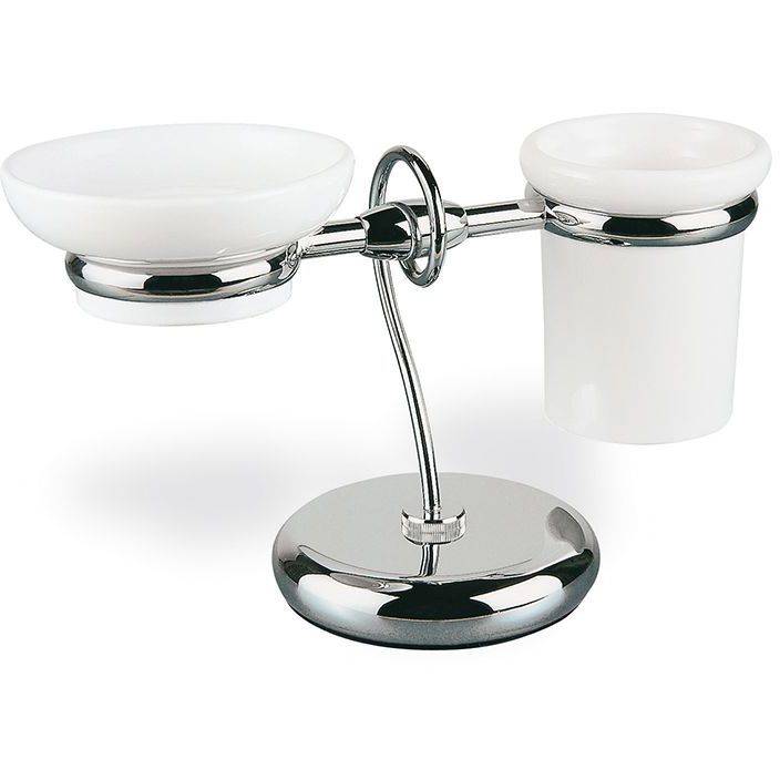 Стакан, мыльница настольные керамические Stil Haus (Стил Хаус) Idra, цвет хром - белая керамика I15(08-BI)