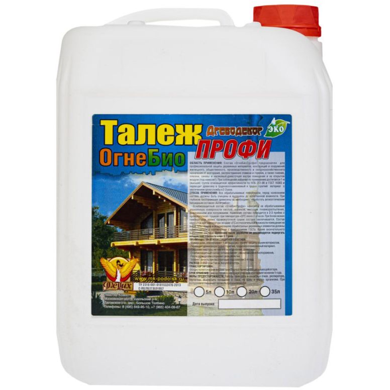 Огнезащитный состав "ОгнеБиоПроф" Древодекор " предназначен для профессиональной комплексной защиты древесины от возгорания, распространения пламени и горения, а также гниения, плесени, синевы и насекомых-древоточцев внутри помещения и на открытом воздухе (под навесом!). При соблюдении указаний по применению достигается 1-я группа огнезащитной эффективности по ГОСТ 53292-2009. Состав переводит древесину в трудновоспламеняемый и трудно горючий материал с увеличением срока службы в 2-3 раза. Применяется для обработки новых и ранее обработанных антипиреном или антисептиком деревянных стропил, балок, несущих чердачных деревянных конструкций (желательно использовать колерованный вариант состава, который позволяет визуально определять обработанные поверхности древесины), обрешеток, перекрытий, обшивок, перегородок, стен и других пиленных, струганных, бревенчатых элементов конструкций жилищного, общественного, производственного и сельскохозяйственного назначения Не препятствует дыханию древесины и не вызывает коррозию.