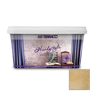 Terraco Хэндистайл – перламутровое тонированное полупрозрачное покрытие на акриловой основе для нанесения и создания дополнительных декоративных эффектов на текстурированных поверхностях стен и потолков созданных при помощи таких материалов как Супертекс Интерьерный, Хэндитекс, Терравертин. Хэндистайл относится к стильной Дизайнерской Коллекции Террако, используется при выполнении отделочных работ внутри помещений.