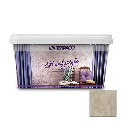 Terraco Хэндистайл – перламутровое тонированное полупрозрачное покрытие на акриловой основе для нанесения и создания дополнительных декоративных эффектов на текстурированных поверхностях стен и потолков созданных при помощи таких материалов как Супертекс Интерьерный, Хэндитекс, Терравертин. Хэндистайл относится к стильной Дизайнерской Коллекции Террако, используется при выполнении отделочных работ внутри помещений.
