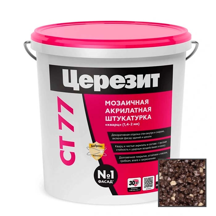 Ceresit CT 77. Акриловая декоративная штукатурка «мозаичная» 1,4-2,0 мм Тонкослойная штукатурка с зернистой фактурой из разноцветной каменной крошки 1,4-2,0 мм