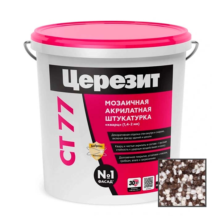 Ceresit CT 77. Акриловая декоративная штукатурка «мозаичная» 1,4-2,0 мм Тонкослойная штукатурка с зернистой фактурой из разноцветной каменной крошки 1,4-2,0 мм