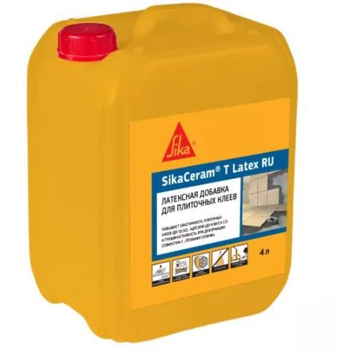 SikaCeram® T Latex RU – раствор синтетического латекса, предназначенный для затворения цементных плиточных клеев. SikaCeram® T Latex RU позволяет улучшить эксплуатационные характеристики плиточных клеев, такие как: адгезия, эластичность, морозостойкость и трещиностойкость. SikaCeram® T Latex RU совместим с плиточными клеями класса С1 или С2.