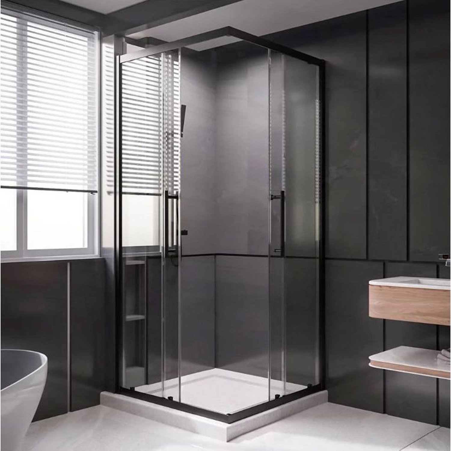 1/2 Душевого угла Veconi (Векони) Premium Trento PTC-20B PTC20-B-90-01-C4 900х2000 мм черный мат. стекло прозрачное 8 мм