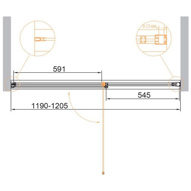 Открывание двери на 180°, герметичность между примыканием двери, неподвижным элементом стекла и дверью, осуществляется при помощи силиконового уплотнителя (без использования магнитных уплотнителей).