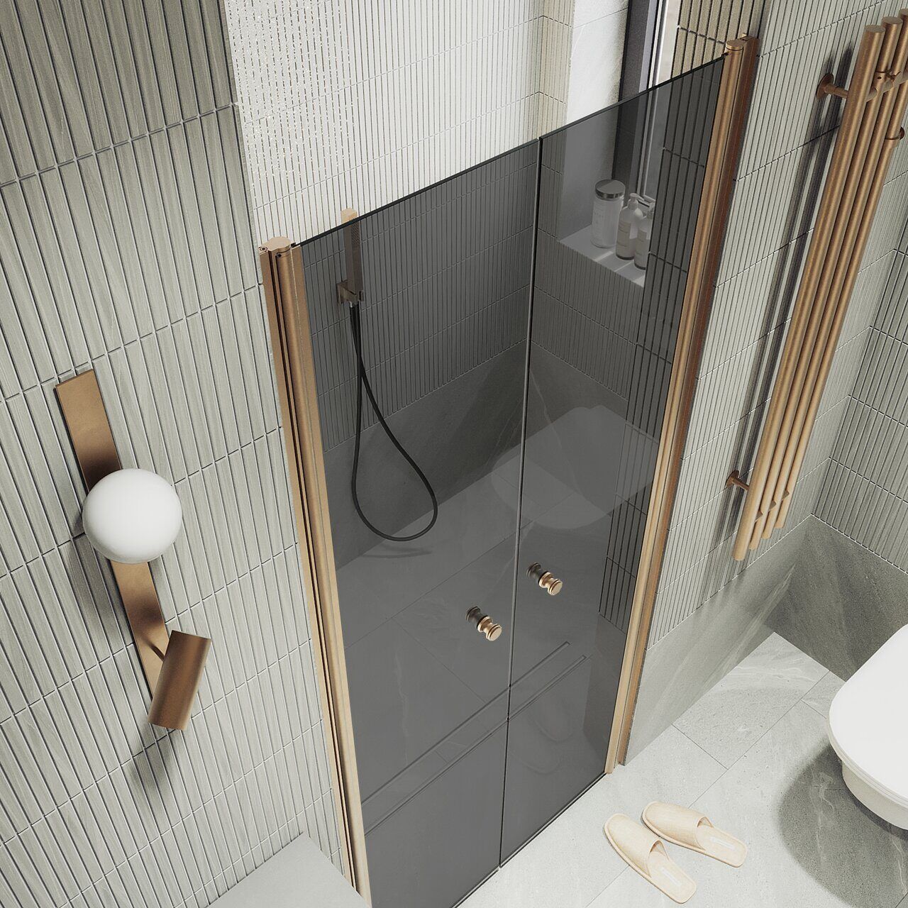 Душевая дверь двустворчатая на монопетлях Maybahglass (Майбахгласс) 1980х800 мм, стекло 6 мм Графит MGD-431-2