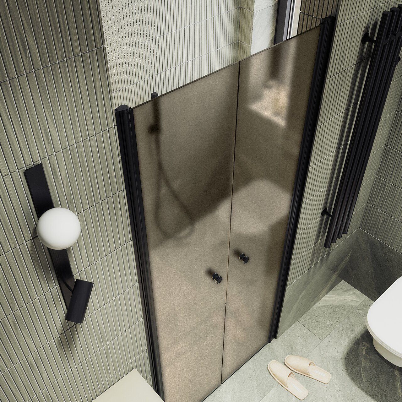 - Удобство в эксплуатации: Двустворчатая конструкция позволяет легко входить в душевую зону и обеспечивает широкий проход.