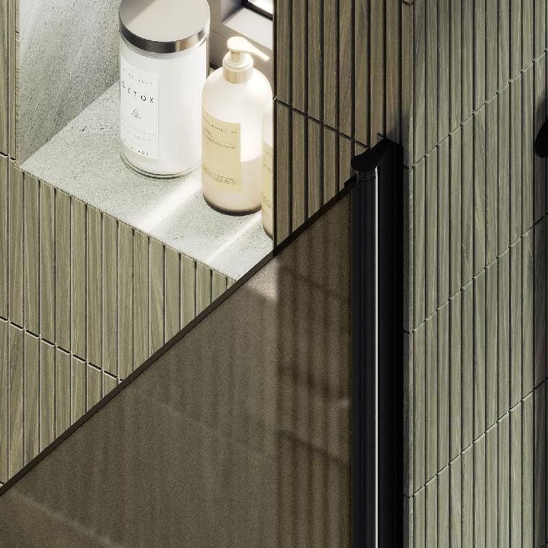 Закаленное стекло, цвет бронза матовое, толщина 6 мм 1950х840 мм - 1 шт. Профиль П-образный, цвет черный - 1 шт. Комплект крепежа - 1 шт. Уплотнитель – 2 шт. Инструкция по монтажу - 1 шт. Ручка кноб-1 шт