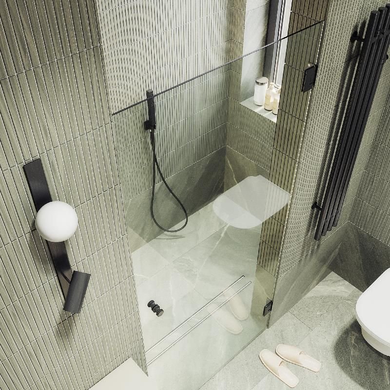 Стеклянная душевая дверь на петлях является стильным и функциональным элементом для ванной комнаты. Она обеспечивает мягкое и плавное открывание, что повышает комфорт использования. Изготовленная из прочного закаленного стекла дверь устойчива к царапинам и влаге, что гарантирует ее долговечность.