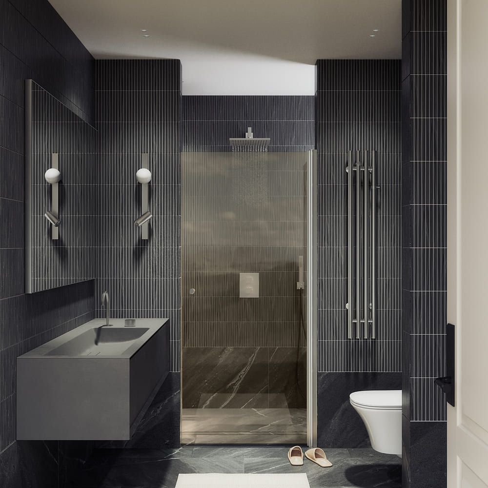 - Современный дизайн: Бронзовое стекло придает ванной комнате элегантный вид, создавая атмосферу уюта и стиля.
