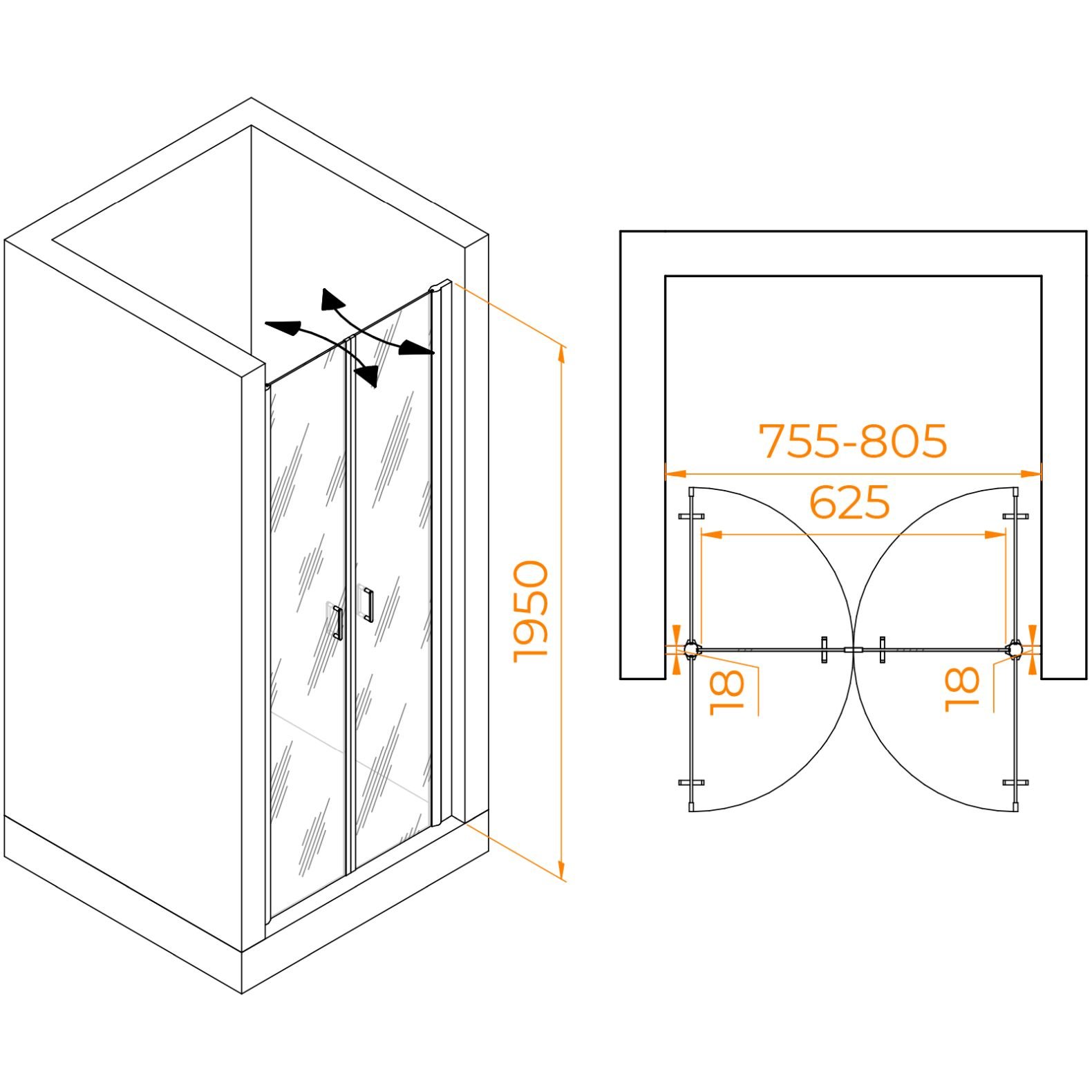 Душевая дверь RGW (РГВ) 80x195 см PA-104-B черный цвет, прозрачное стекло 6 мм, EasyClean (060810408-14)