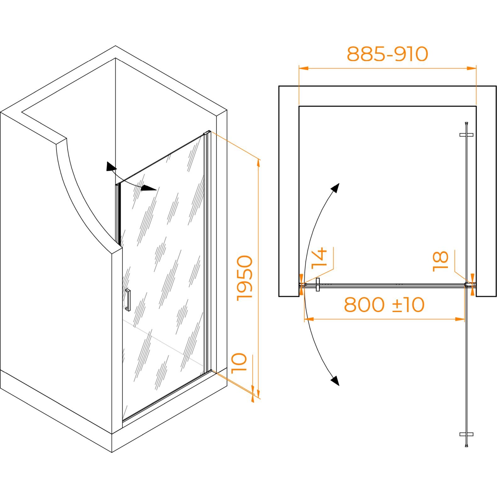 Душевая дверь RGW (РГВ) Leipzig 90x195 см LE-003-B черный цвет, прозрачное стекло 6 мм, EasyClean (351200309-14)