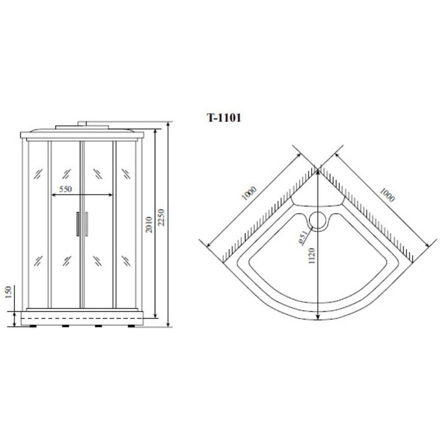 Душевая кабина Timo (Тимо) Standart T-6601SF цвет профиля хром, стекло матовое 5 мм 100х220х100 см