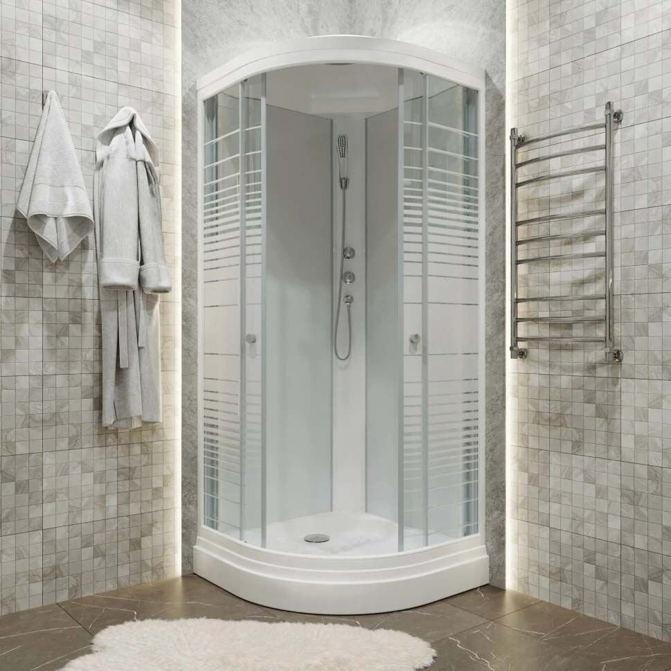 Душевая кабина Тритон (Triton) Полосы 1000х1000х2305 мм, с рисунком 4 мм, профиль белый (Щ0000061830) А (7 мест+сифон D90мм)