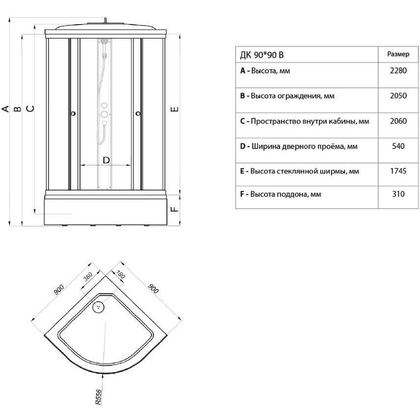 Душевая кабина Тритон (Triton) Сатин 900х900х2280 мм, Матовый 4 мм, профиль белый (Щ0000058489) В, средний поддон, ДН4 (7 мест+сифон D50мм)