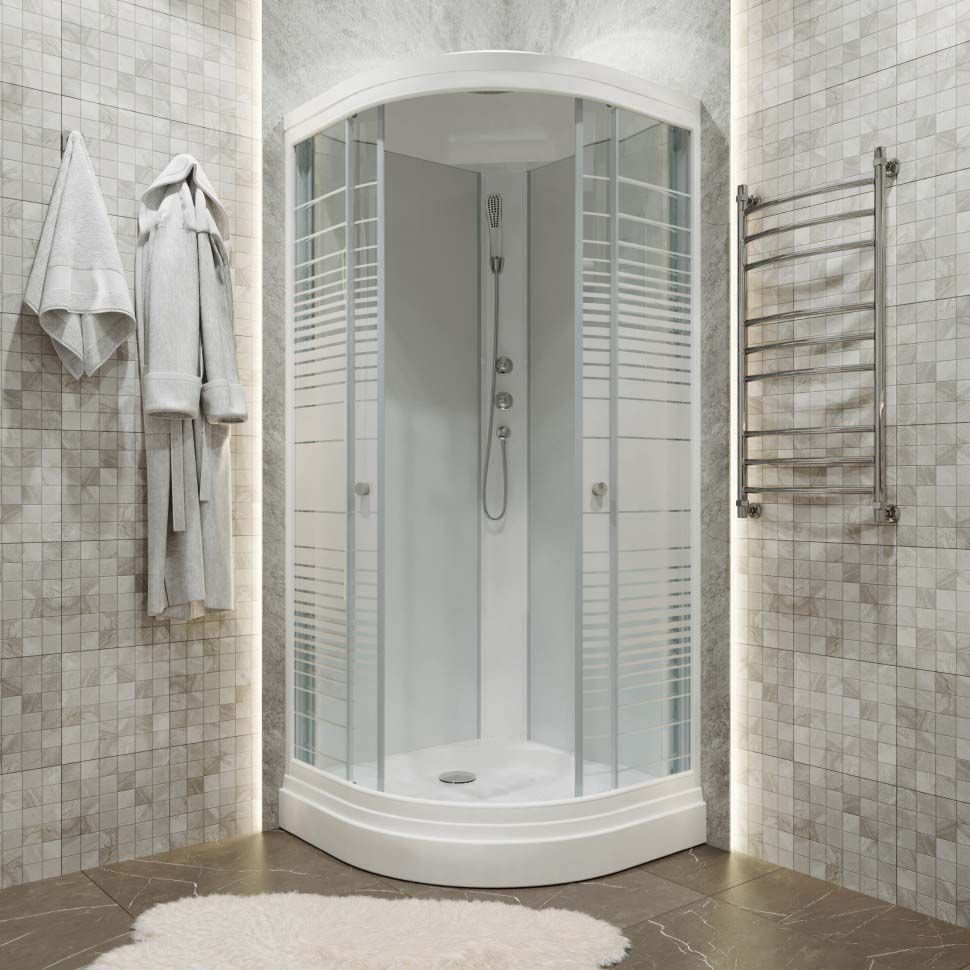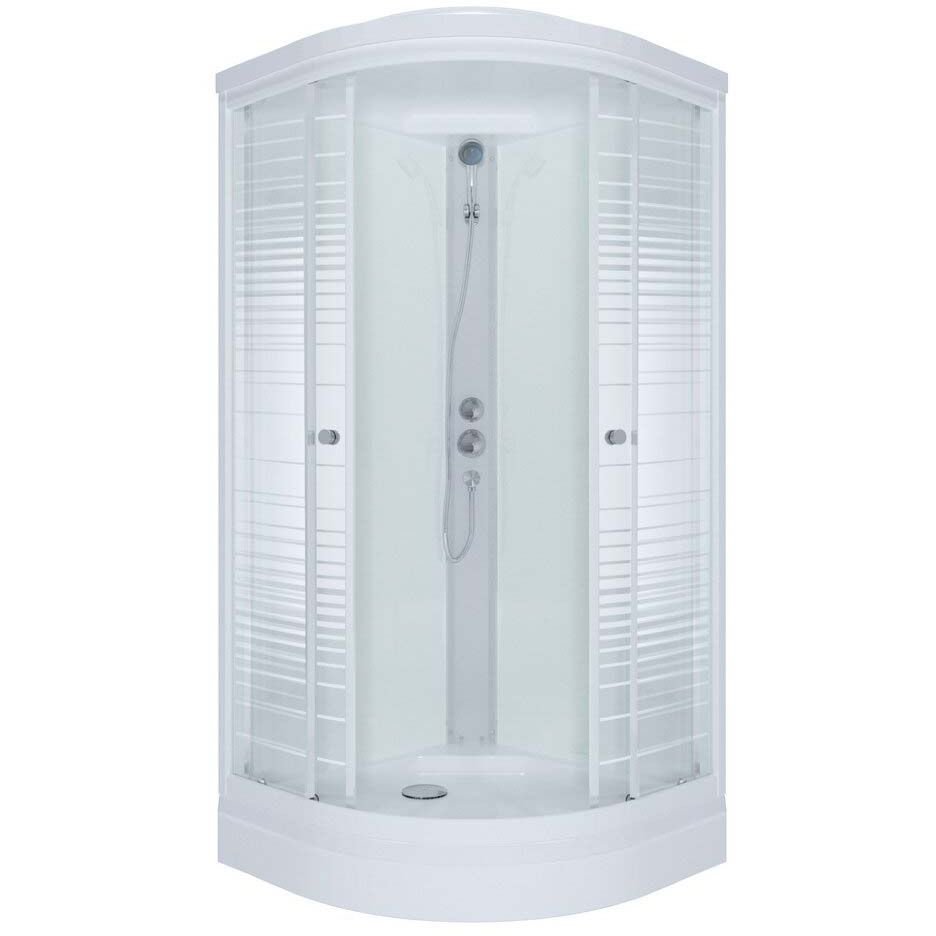 Душевая кабина Тритон (Triton) Стандарт 1000х1000х2280 мм, с рисунком 4 мм, профиль белый (Щ0000030290) А, низкий поддон, аква, полосы, ДН4 (7 мест+сифон D90мм)