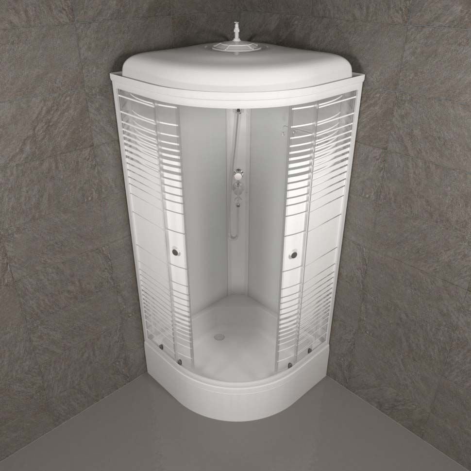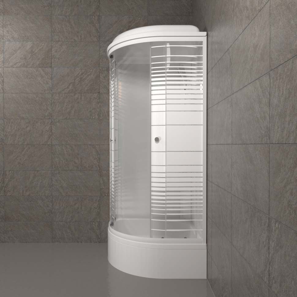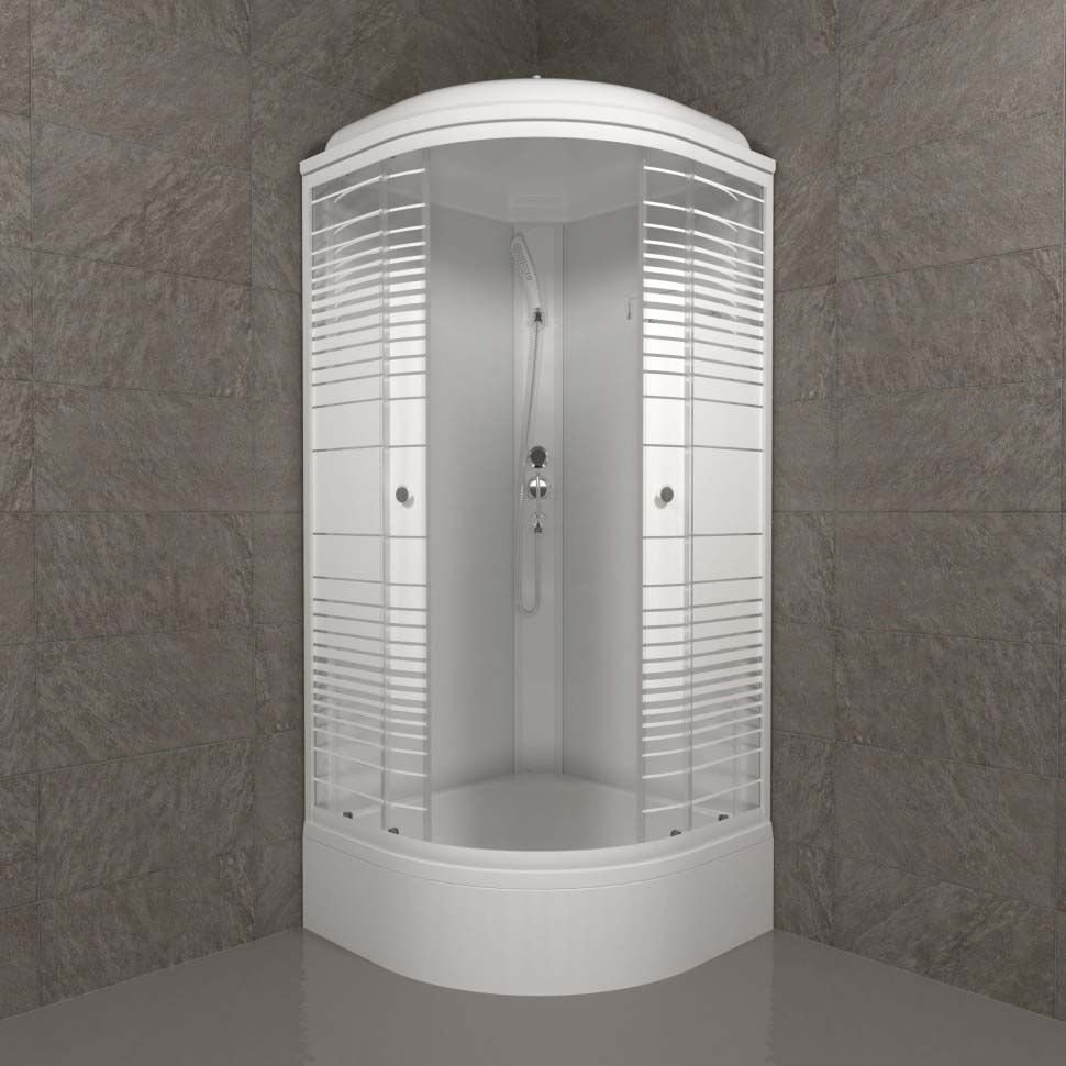 Душевая кабина Тритон (Triton) Стандарт 900х900х2315 мм, с рисунком 4 мм, профиль белый (Щ0000027249) В, средний поддон, аква, полосы, ДН4 (7 мест+сифон D50мм)