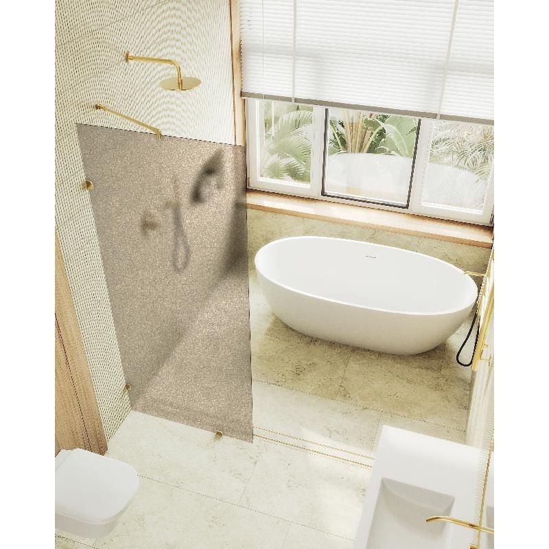 Закаленное стекло , цвет бронза матовое, толщина 8 мм , 1950*890-1 шт. Коннектор стена-стекло, цвет золото -3 шт. Штанга стена-стекло -1 шт. Комплект крепежа-1 шт. Инструкция по монтажу-1 шт. Уплотнитель стена-стекло -2 шт