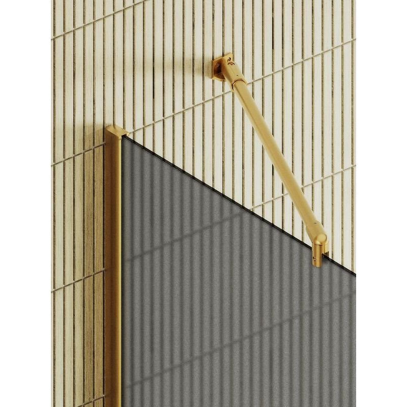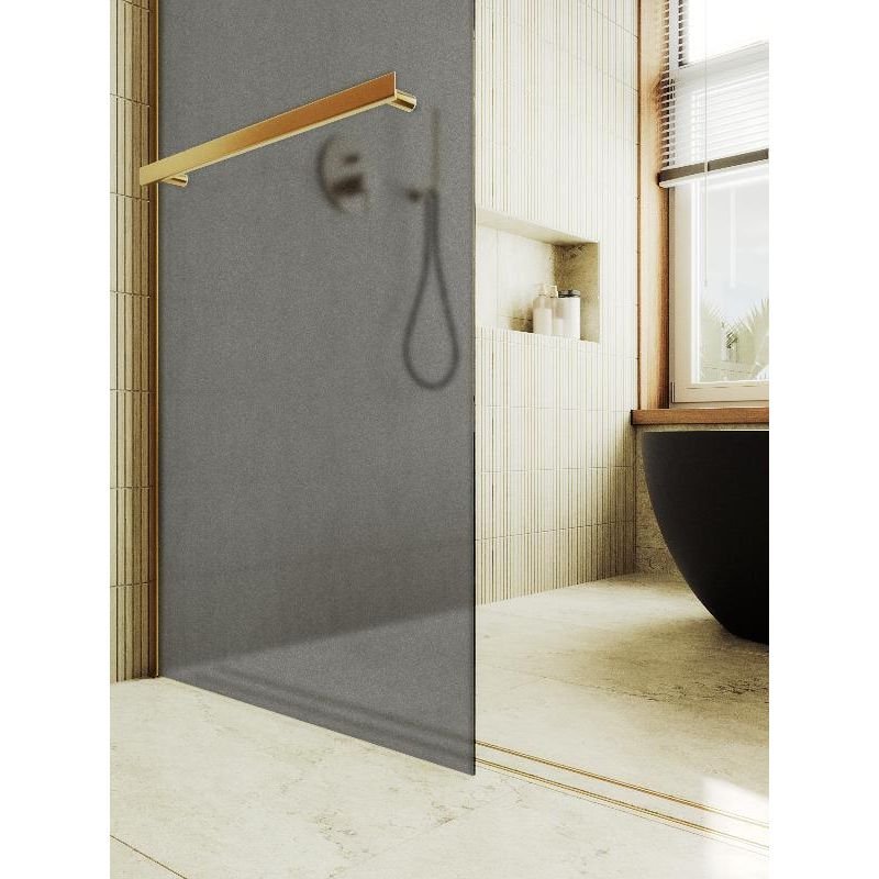 Закаленное стекло , цвет графит матовый, толщина 8 мм , 1950*890-1 шт. Профиль П-образный , цвет золото -1 шт. Штанга стена-стекло -1 шт. Полотенцедержатель -1 шт. Комплект крепежа-1 шт. Инструкция по монтажу-1 шт. Уплотнитель -2 шт