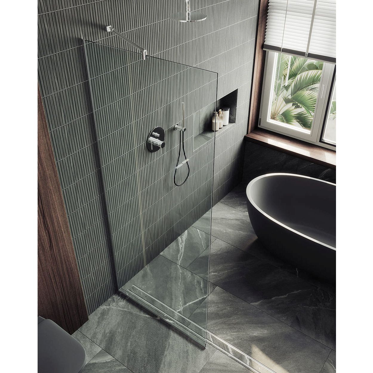 - Универсальность установки: Перегородка может быть установлена как в угловых, так и в прямых душевых зонах, что делает её удобным решением для любой планировки ванной комнаты.