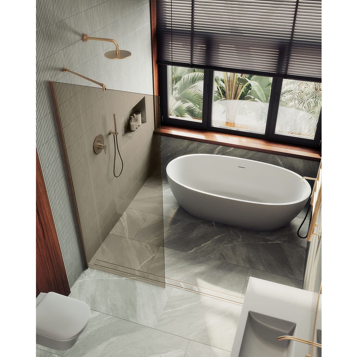 - Оптимальная защита от брызг: Стильная перегородка эффективно предотвращает разбрызгивание воды, сохраняя пол и стены ванной комнаты сухими.
