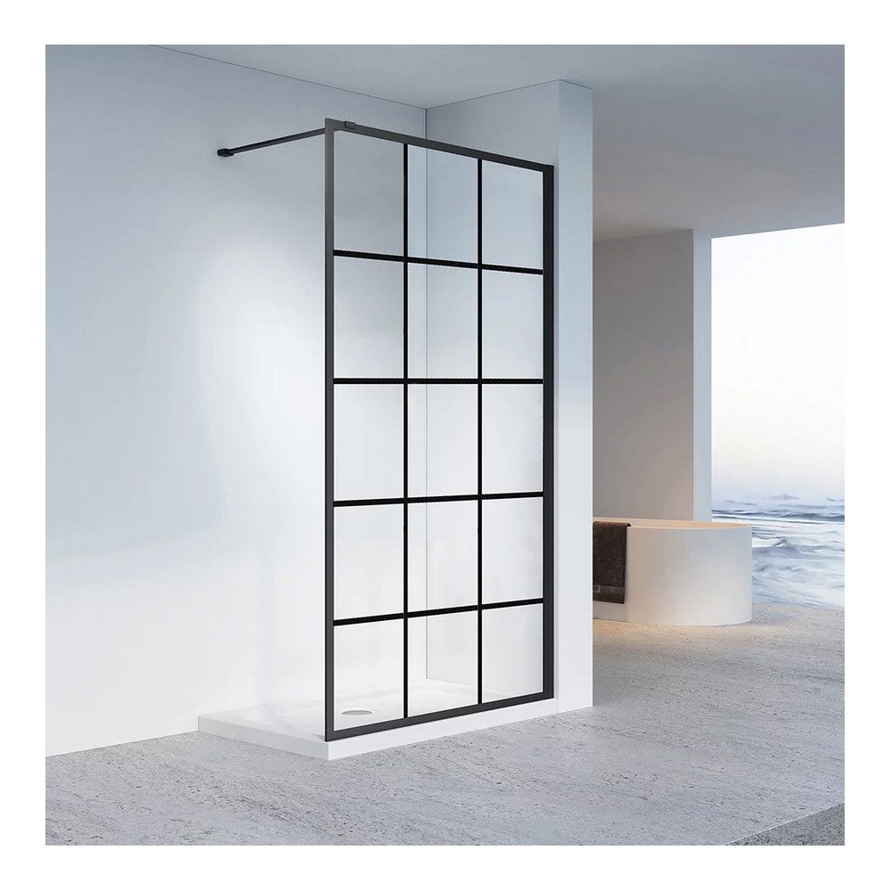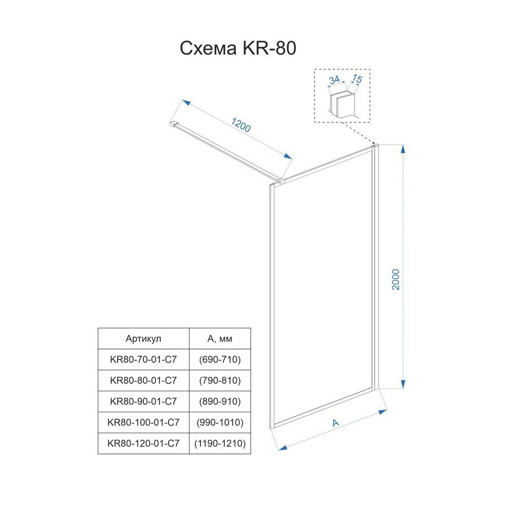 Душевая перегородка Veconi Korato KR-80. Стекло закалённое безопасное 8 мм. На стекле принт клетка. Профиль анодированный алюминий. Цвет профиля - черный. Усиливающая пристенная штанга из нержавеющей стали - 1200 мм. Изделие выполнено в стиле Loft. Высота изделия 200 см. Штангу можно подрезать под необходимый размер.