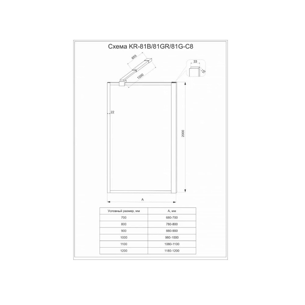 Душевая перегородка Veconi Korato KR-81GR. Поддон или трап приобретается отдельно.Толщина закаленного стекла 8 мм. Высота изделия 200 см. Профиль анодированный алюминий. Цвет профиля - брашированный графит. Усиливающая пристенная телескопическая штанга из нержавеющей стали - 700 - 1200 мм. Профиль по всему периметру стекла.