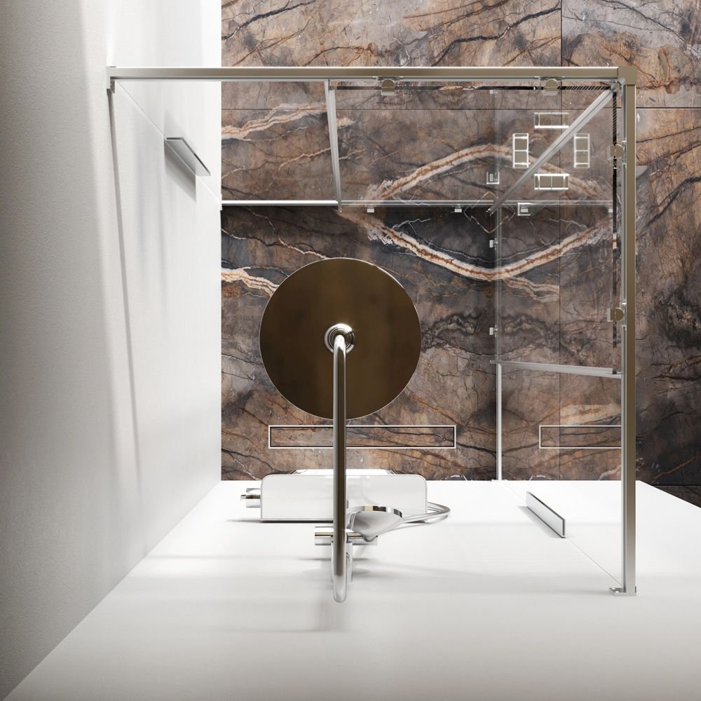 Премиальное качество: анодированные профили из алюминия, двойные металлические ролики и ручки, ударопрочное закаленное стекло 6 мм, стеновые кронштейны в комплекте позволяют компенсировать неровности стен до 4 мм. Высота ограждения 200 см – с заботой о высоких людях.