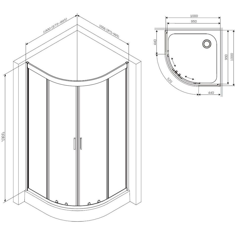 Система крепления профилей QuickFix. Простой и быстрый монтаж душевого ограждения. Надежные хромированные двойные ролики – Не менее 150 000 открываний. Прозрачное закаленное стекло толщиной 5 мм. Ручка из анодированного алюминия. Поддон приобретается отдельно
