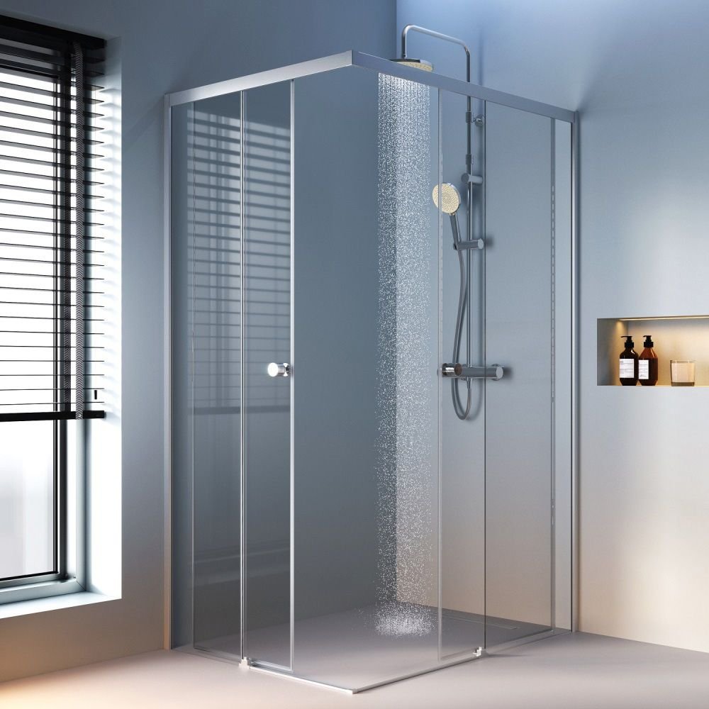 Прочная конструкция с надежными роликами увеличенного диаметра для плавного хода двери и закаленным стеклом. Толщина дверей – 6 мм., стенок – 4 мм. Беспрецедентно стойкое покрытие: надежный алюминиевый профиль окрашен методом порошкового нанесения при высокой температуре, благодаря чему краска ложится на профиль идеально ровно, а также проникает в структуру самого металла.