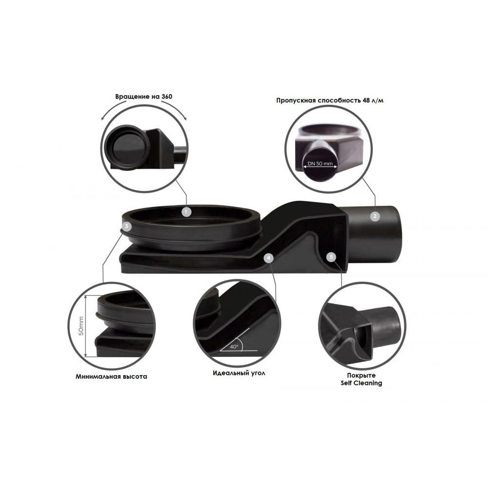 Два дизайна в одной модели за счет двухсторонней дизайн-вставки (с одной стороны – матовый хром, с другой стороны – закаленное глянцевое стекло); система слива конденсата в канализацию-сток; высокое качество материалов; легкость монтажа и простота обслуживания; S-образный сифон, разработанный с высокой степенью функциональности, предотвращает проникновение запахов из канализации; наличие сухого затвора; длительный срок эксплуатации; возможность регулировки высоты и наклона трапа за счет опор, входящих в комплект. комплект : Душевой трап, душевой лоток – 1 шт.; Устройство для снятия решетки – 1 шт.; Набор крепежей – 1 компл.; Защитный элемент на время монтажа – 1 шт.; Гидроизоляционная лента MAPEI – 1 компл.; Инструкция по монтажу – 1 шт.; Гарантийный талон – 1 шт.; Упаковка – 1 шт.
