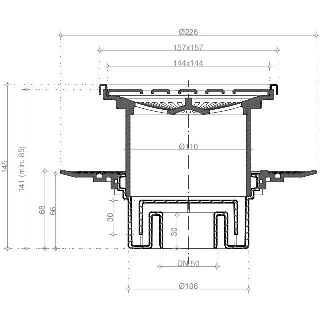 Наличие в комплектации изолирующего воротника (гидроизоляционного кольца и фланца) делает ненужным использование битумных и пластиковых лент (для герметизации между стяжкой пола и плиткой); высокое качество материалов; легкость монтажа; простота обслуживания; длительный срок эксплуатации. Металлические детали: нержавеющая сталь AISI 304 SS, класс К3 (нагрузка до 300 кг, в соответствии с европейским стандартом качества EN 1253). комплект : база - сифон - 1 шт., стакан вертикального слива - 1 шт., кольцо гидроизоляции - 1 шт., металлический фланец для гидроизоляции - 1 шт., корпус - карьер под решетку - 1 шт., сетка для улавливания волос и мелкого мусора - 1 шт., решетка - 1 шт., рамка - 1 шт., комплект креплений - 1 комп., крышка для защиты внутренней части карьера при монтаже - 1 шт.