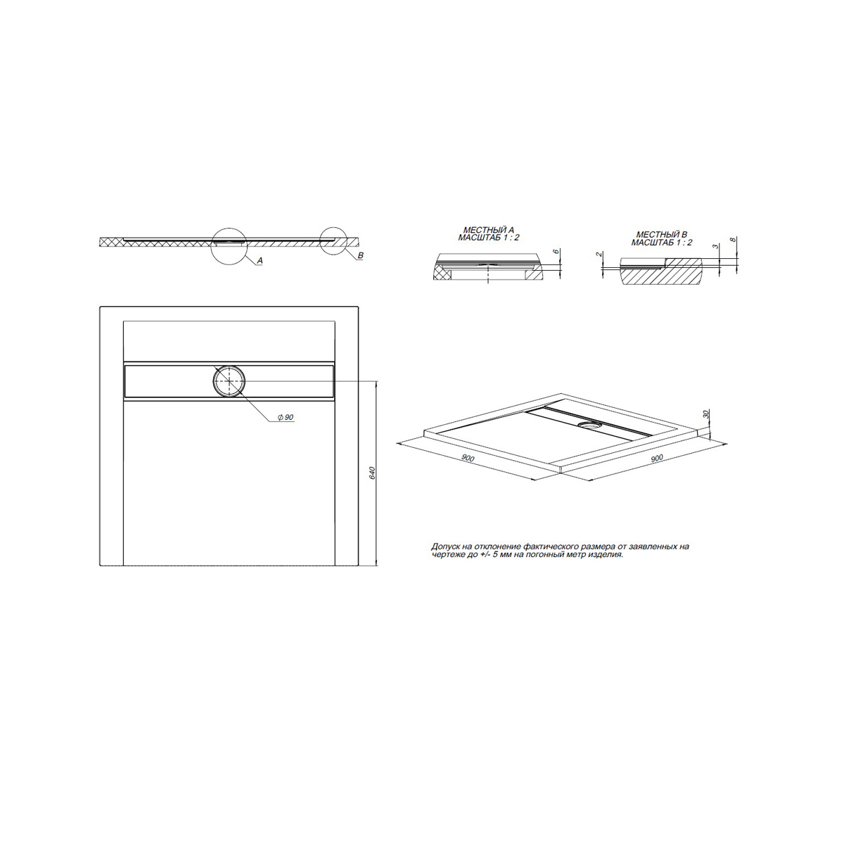 - Удобные габариты: Размер 90x90 см идеально подходит для большинства стандартных душевых кабин.