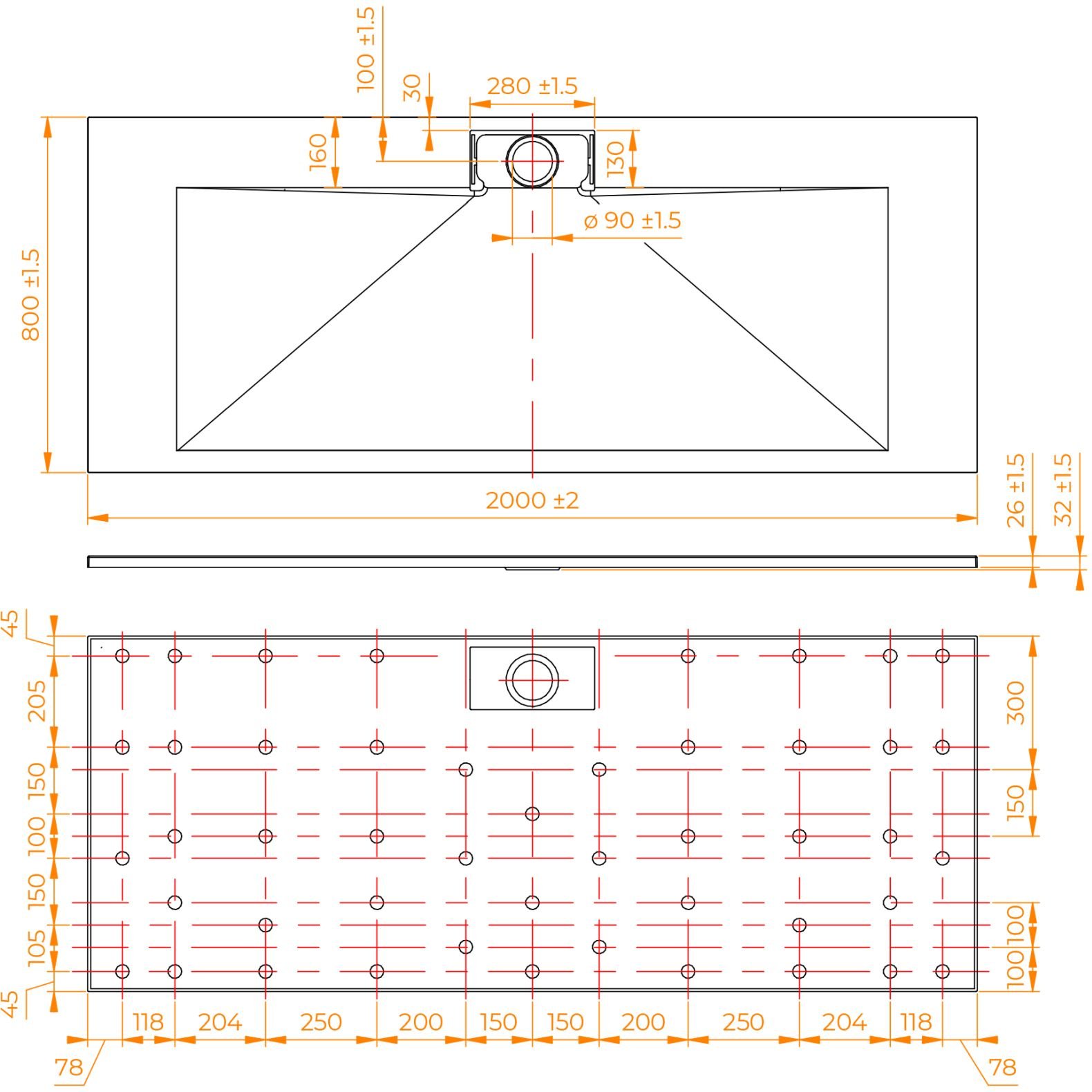 Душевой поддон RGW (РГВ) 80x200 см TKS-208W белый цвет, прямоугольный 90 мм (d слива) (553802820-01)