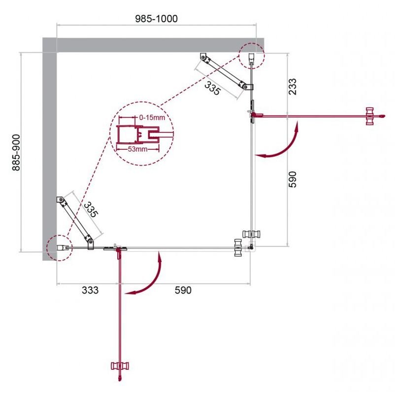 Душевой уголок BelBagno (Бельбагно) KRAFT-AH-22-100/90-C-Cr-L хром, стекло прозрачное 6 мм (1000х1950х900)