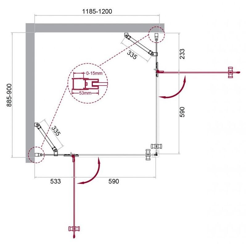 Душевой уголок BelBagno (Бельбагно) KRAFT-AH-22-120/90-C-Cr-L хром, стекло прозрачное 6 мм (1200х1950х900)