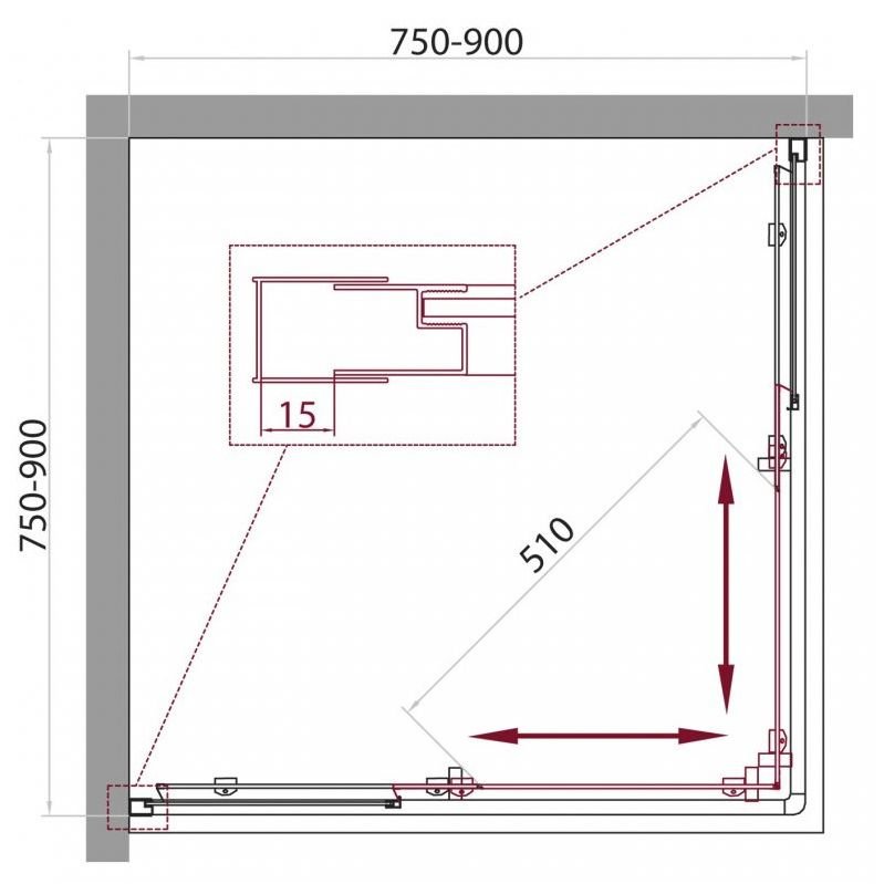 Душевой уголок BelBagno (Бельбагно) UNIQUE-A-2-75/90-P-Cr хром, стекло рифленое 5 мм (750/900х1900х750/900)