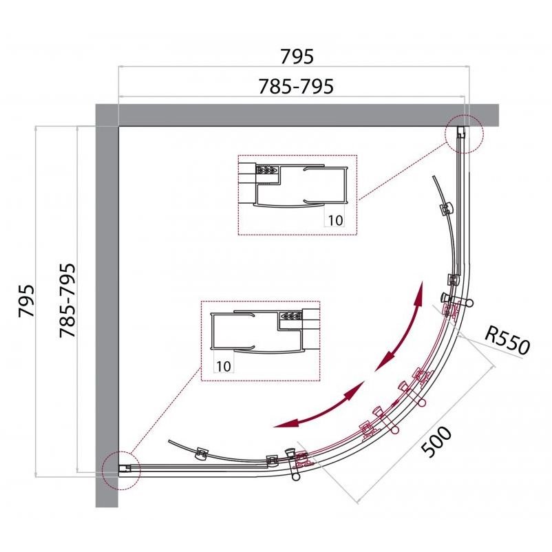 Душевой уголок BelBagno (Бельбагно) UNO-195-R-2-80-C-Cr хром, стекло прозрачное 5 мм (800х1950х800)