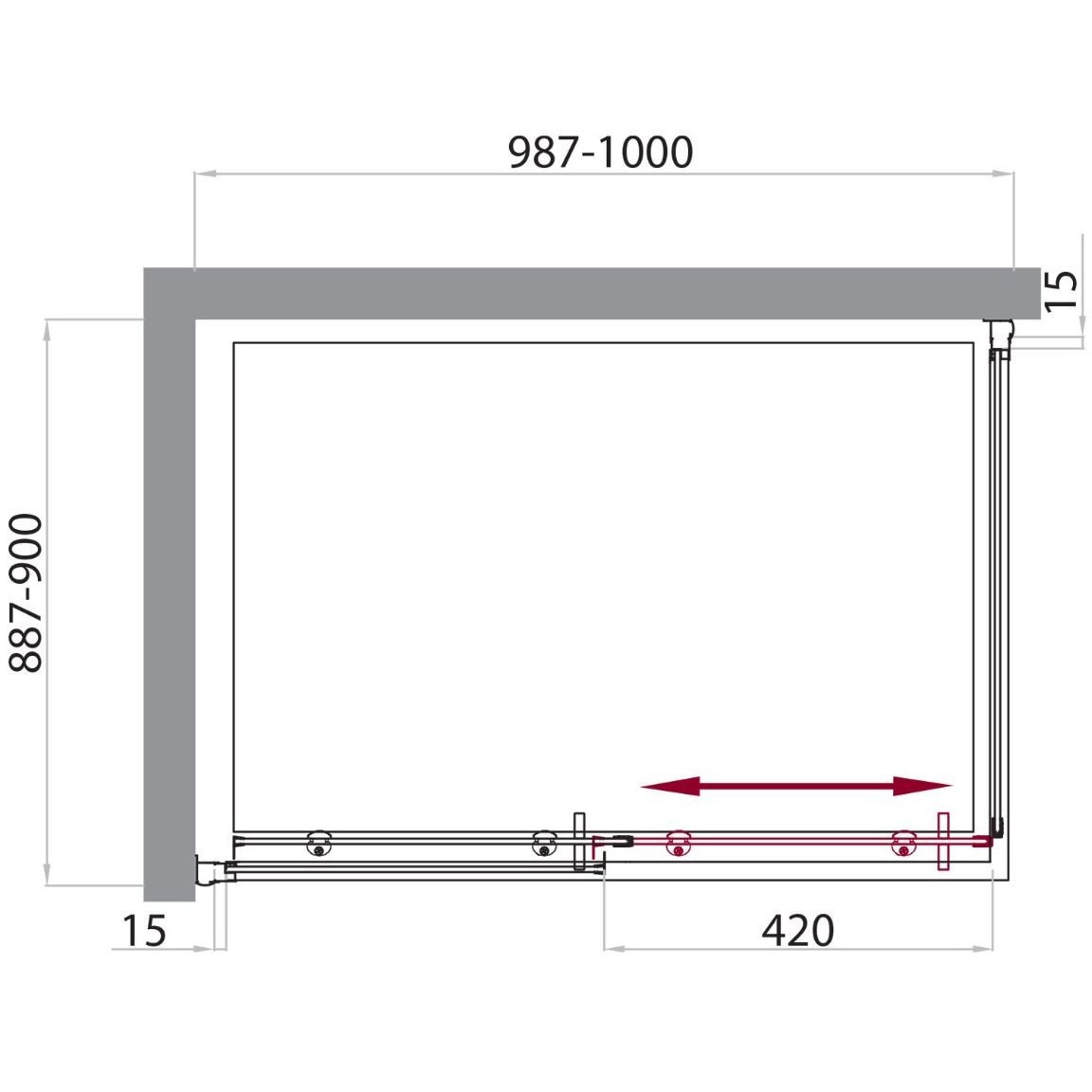 Конструкция двери: раздвижная, двойные подшипниковые ролики.